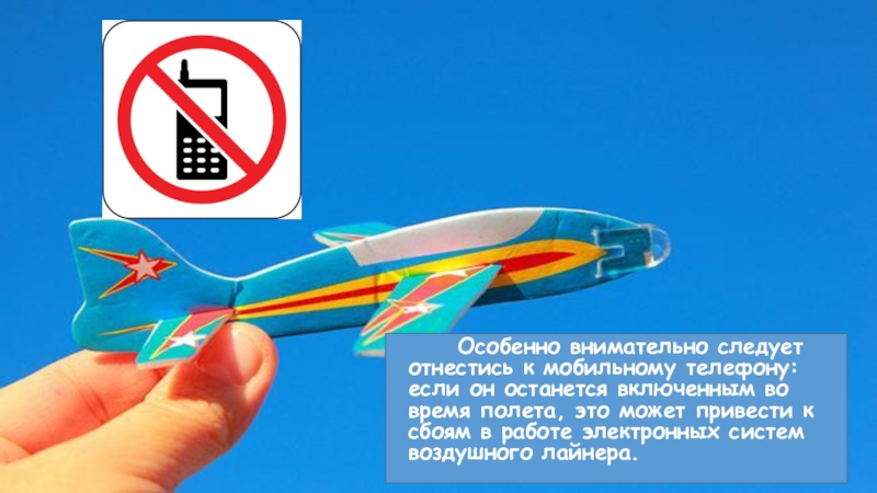 Слайд 22 Особенно внимательно следует отнестись к мобильному телефону: если он останется включенным