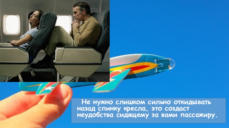 Слайд 24 Не нужно слишком сильно откидывать назад спинку кресла, это создаст неудобства