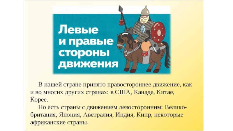 Слайд 8ПРАВЫЕ И ЛЕВЫЕ СТОРОНЫ ДВИЖЕНИЯ