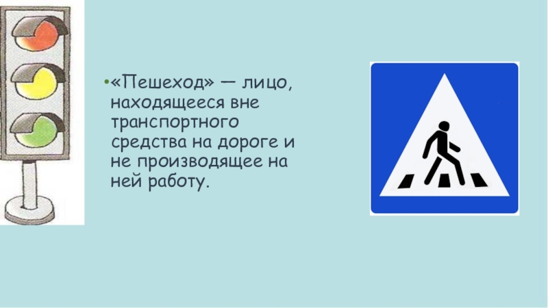 Слайд 26«Пешеход» — лицо, находящееся вне транспортного средства на дороге и не