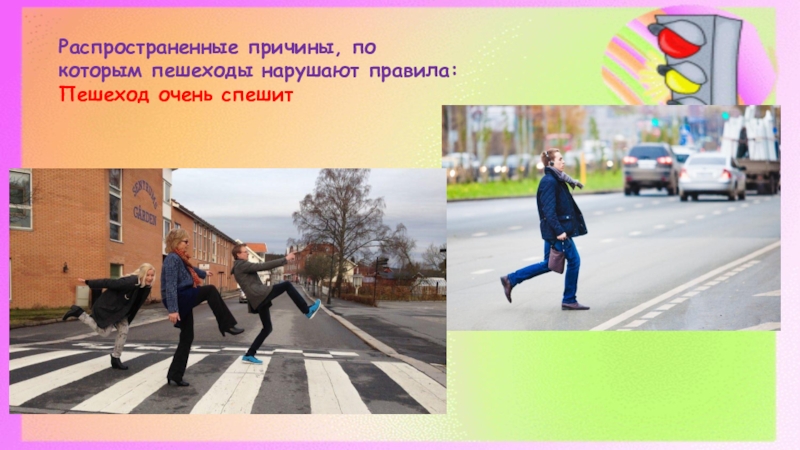 Распространенные причины, по которым пешеходы нарушают правила: Пешеход очень спешит
