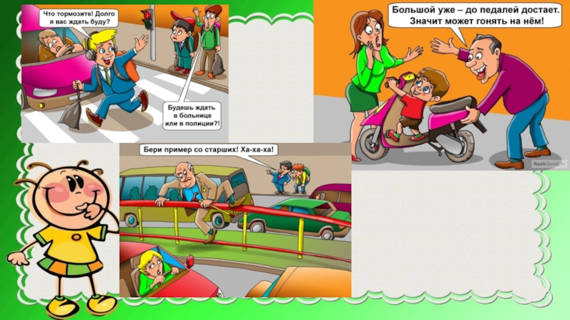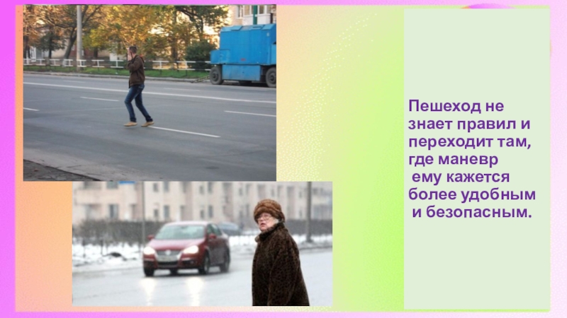 Слайд 35Достаточно распространенными ситуации, когда пешеходы стоят на дороге и разговаривают, создавая