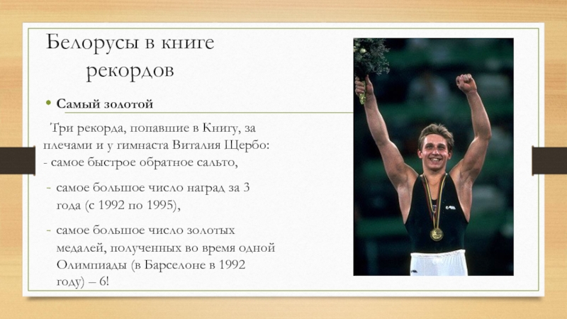 плечами и у гимнаста Виталия Щербо: - самое быстрое обратное сальто,
