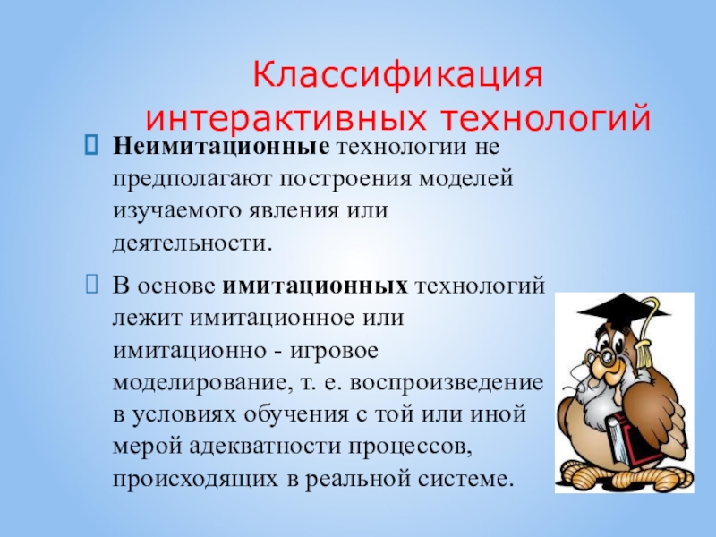 Неимитационные технологии не предполагают построения моделей изучаемого явления или