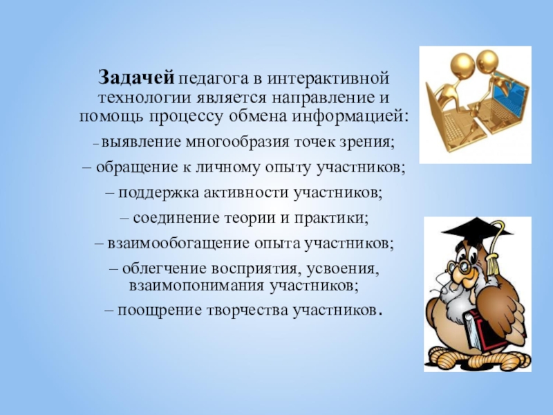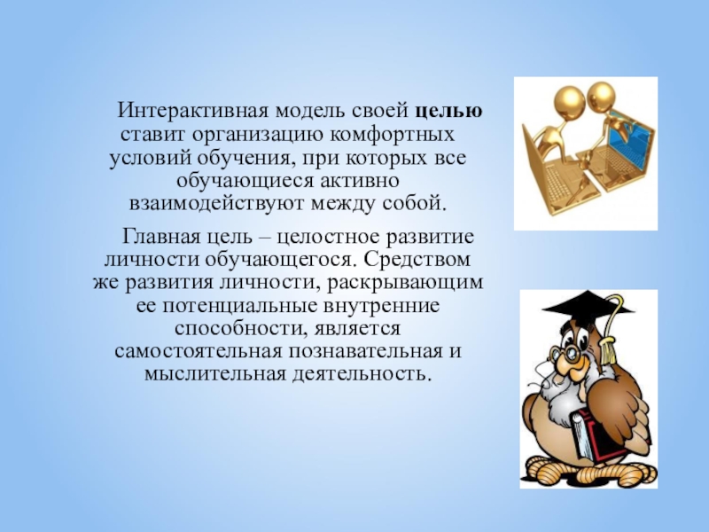 Слайд 10 Интерактивная модель своей целью ставит организацию комфортных
