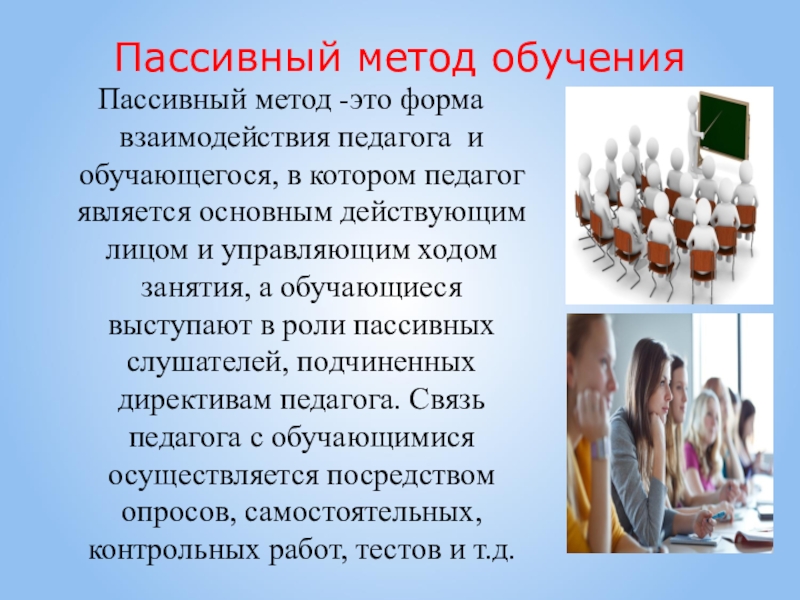 Пассивный метод -это форма взаимодействия педагога и обучающегося,