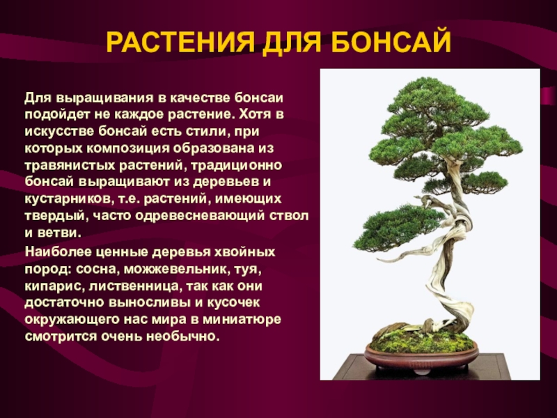 Слайд 6РАСТЕНИЯ ДЛЯ БОНСАЙ