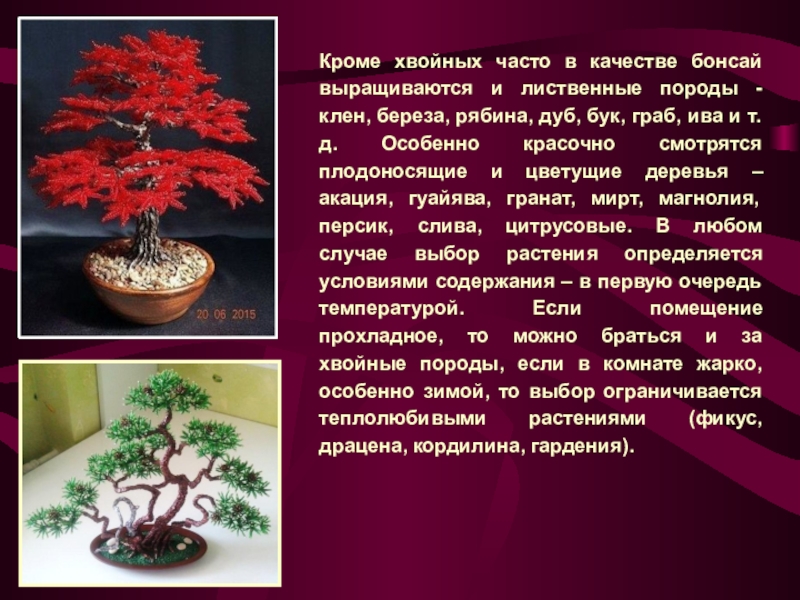Слайд 7Кроме хвойных часто в качестве бонсай выращиваются и лиственные породы -
