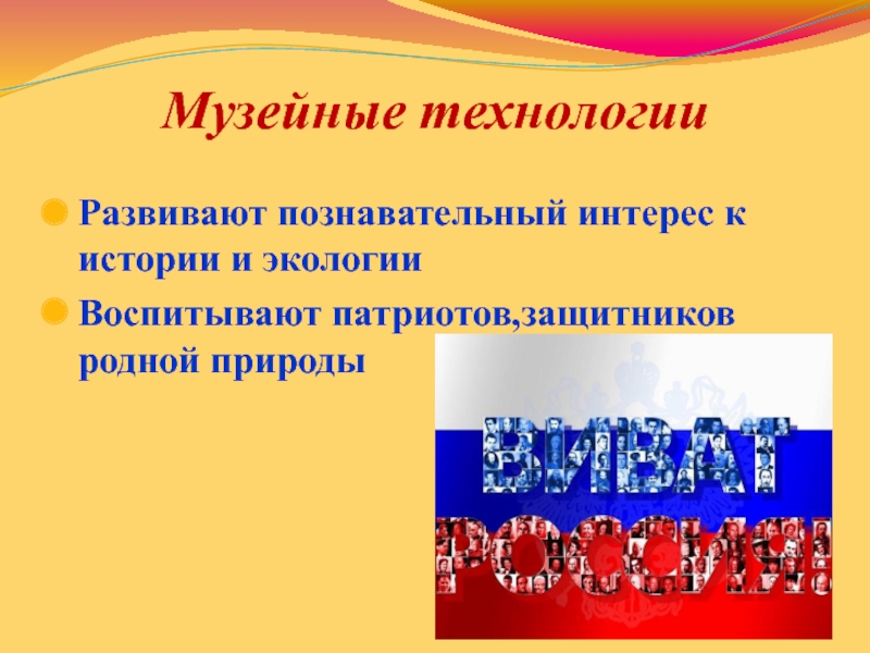 Музейные технологииРазвивают познавательный интерес к истории и экологииВоспитывают патриотов,защитников родной природы