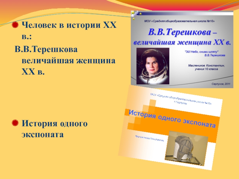 Человек в истории XX в.: В.В.Терешкова величайшая женщина ХХ в.История одного экспоната