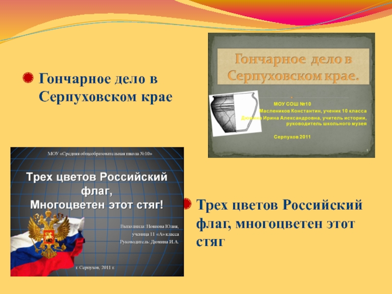 Гончарное дело в Серпуховском краеТрех цветов Российский флаг, многоцветен этот стяг