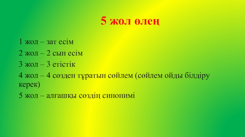 4 жол – 4 сөзден тұратын сөйлем (сөйлем ойды білдіру керек)