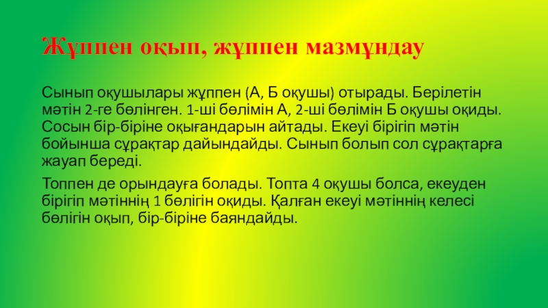 Слайд 18Жұппен оқып, жұппен мазмұндау