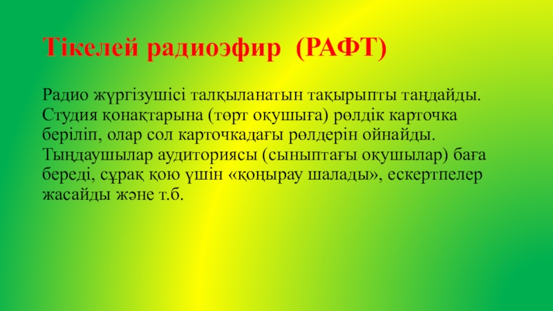 Слайд 14Тікелей радиоэфир (РАФТ)