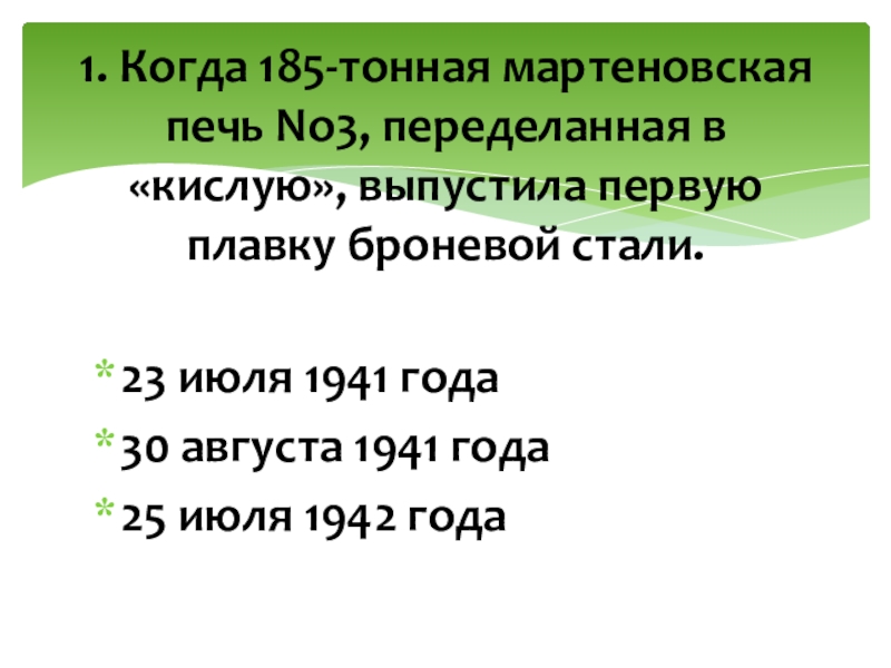 1. Когда 185-тонная мартеновская печь No3, переделанная в «кислую», выпустила первую