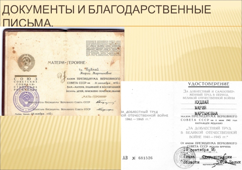 Слайд 28ДОКУМЕНТЫ И БЛАГОДАРСТВЕННЫЕ ПИСЬМА.