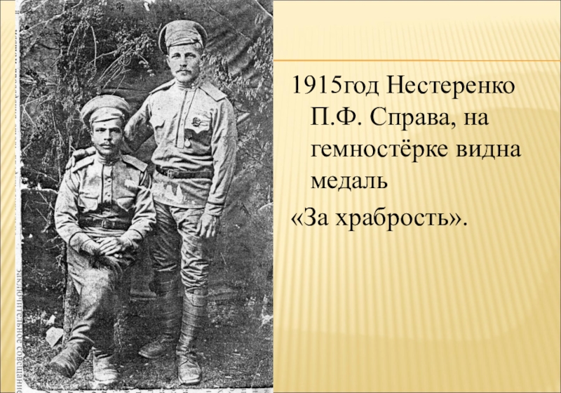 1915год Нестеренко П.Ф. Справа, на гемностёрке видна медаль
