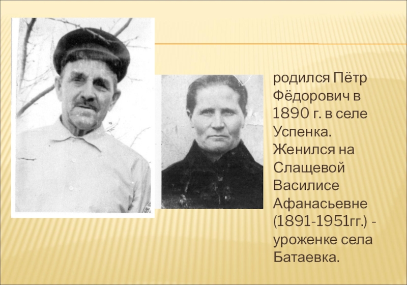 родился Пётр Фёдорович в 1890 г. в селе Успенка. Женился на