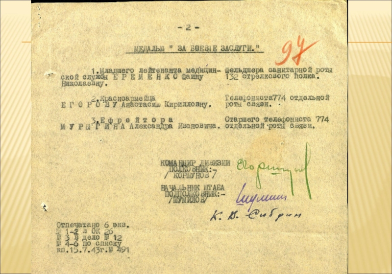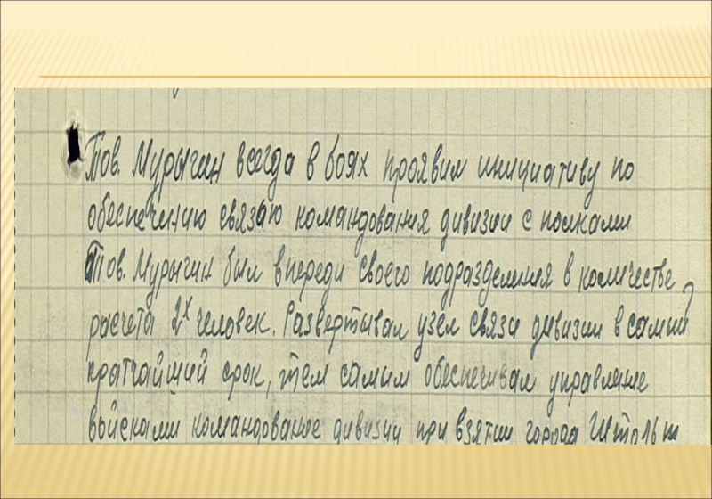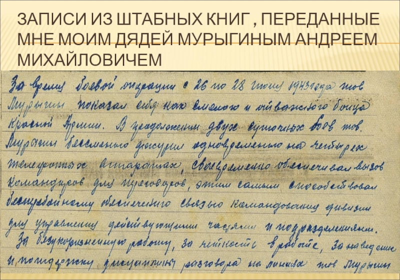 Слайд 22ЗАПИСИ ИЗ ШТАБНЫХ КНИГ , ПЕРЕДАННЫЕ МНЕ МОИМ ДЯДЕЙ МУРЫГИНЫМ АНДРЕЕМ