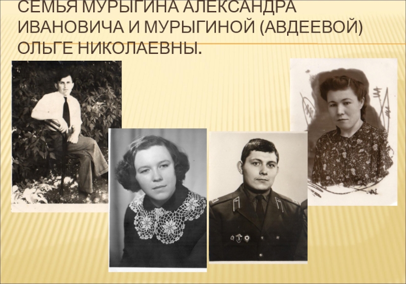 Слайд 18СЕМЬЯ МУРЫГИНА АЛЕКСАНДРА ИВАНОВИЧА И МУРЫГИНОЙ (АВДЕЕВОЙ) ОЛЬГЕ НИКОЛАЕВНЫ.
