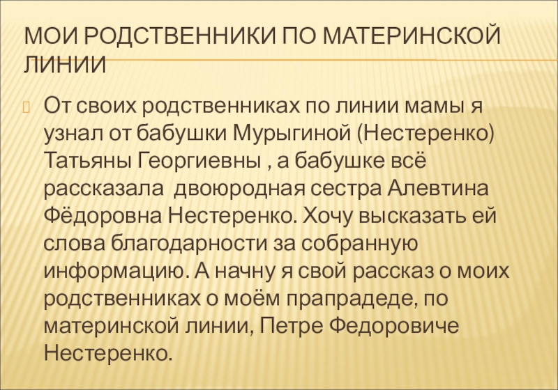 Слайд 6МОИ РОДСТВЕННИКИ ПО МАТЕРИНСКОЙ ЛИНИИ