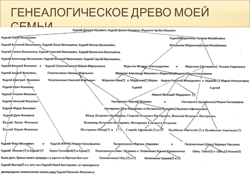 Слайд 49 При составлении дерева я дошёл до пятого колена, то есть