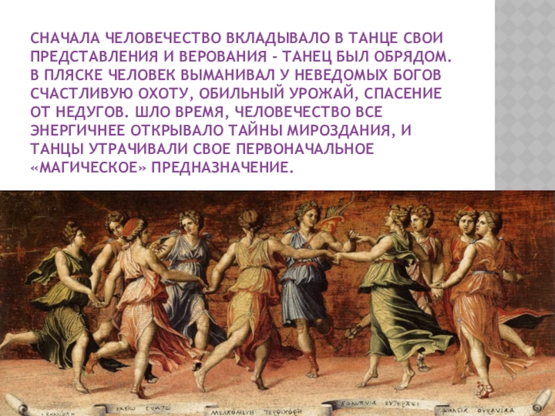 Слайд 5Сначала человечество вкладывало в танце свои представления и верования - танец