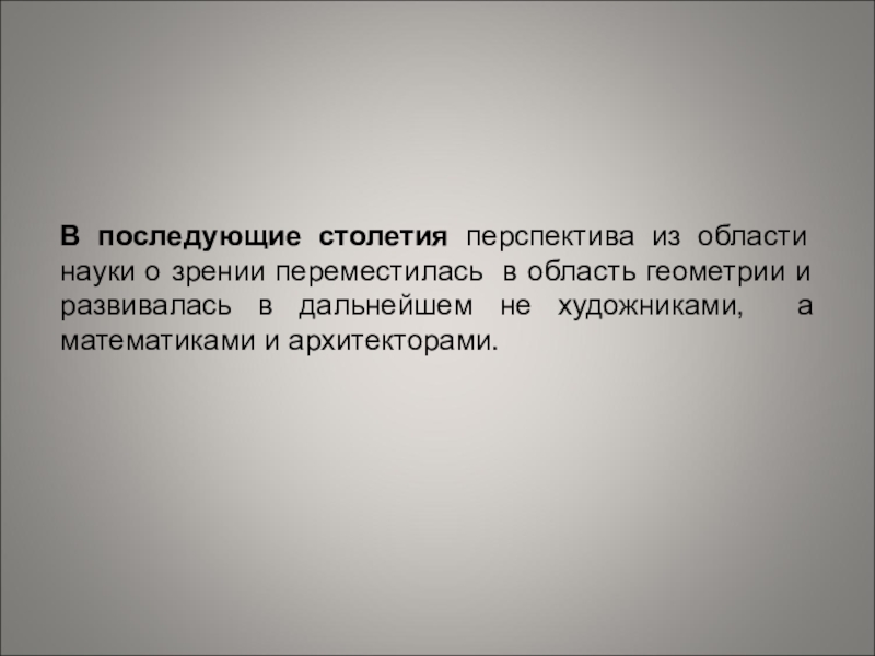 Слайд 21В последующие столетия перспектива из области науки о зрении переместилась в