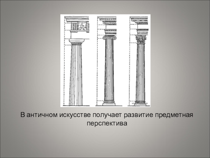 Слайд 10В античном искусстве получает развитие предметная перспектива