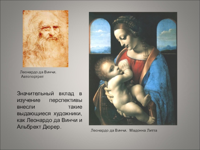 Слайд 19Значительный вклад в изучение перспективы внесли такие выдающиеся художники, как Леонардо