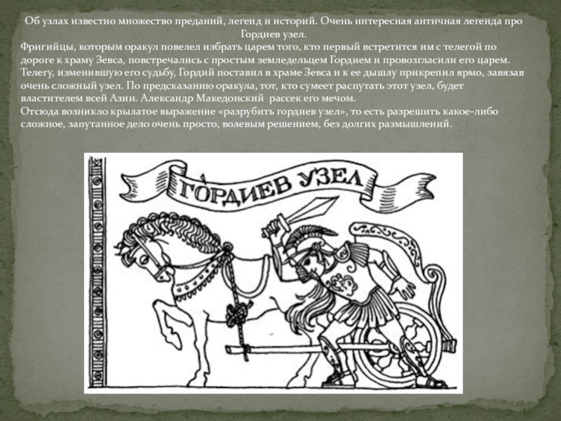 Слайд 9Об узлах известно множество преданий, легенд и историй. Очень интересная античная