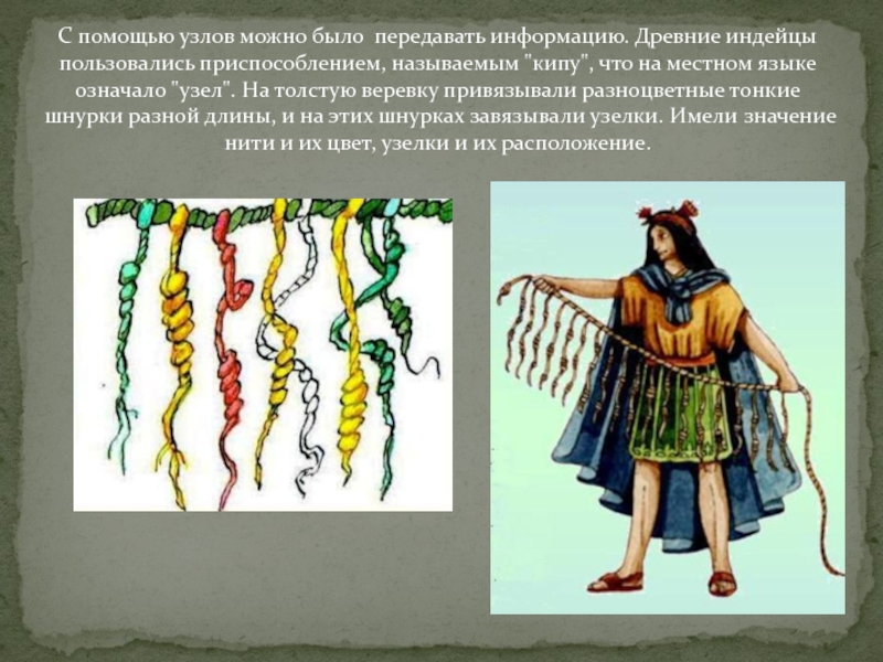 Слайд 4С помощью узлов можно было передавать информацию. Древние индейцы пользовались приспособлением,
