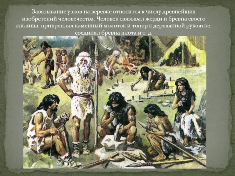 Слайд 2Завязывание узлов на веревке относится к числу древнейших изобретений человечества. Человек