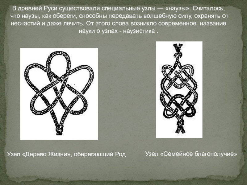 Слайд 8В древней Руси существовали специальные узлы — «наузы». Считалось, что наузы,