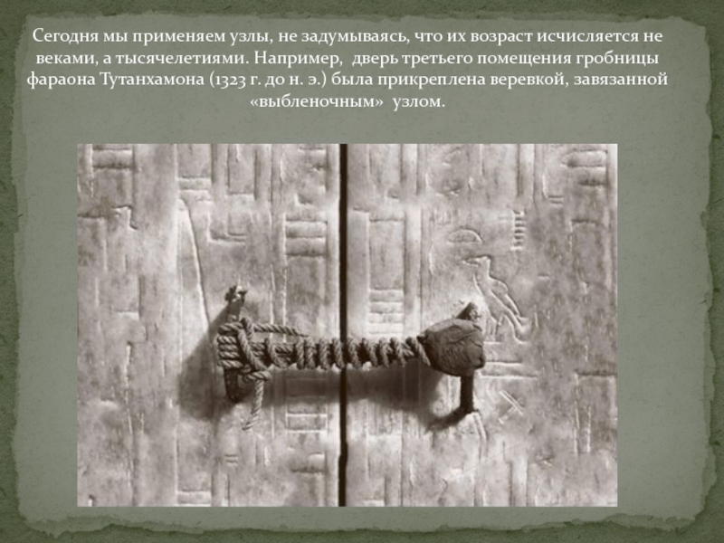 Слайд 5Сегодня мы применяем узлы, не задумываясь, что их возраст исчисляется не