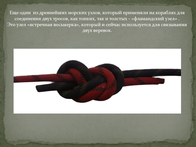 Слайд 12Еще один из древнейших морских узлов, который применяли на кораблях для