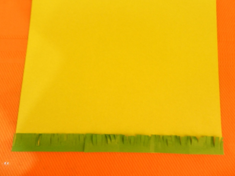 Размещаем на картоне (фоне) готовую травку. Приклеиваем.