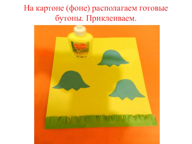 Слайд 11На картоне (фоне) располагаем готовые бутоны. Приклеиваем.