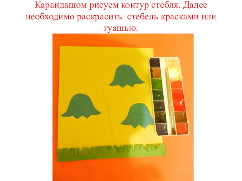 Слайд 14Карандашом рисуем контур стебля. Далее необходимо раскрасить стебель красками или гуашью.