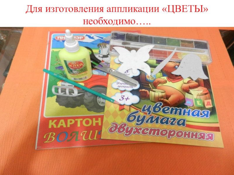 Слайд 2Для изготовления аппликации «ЦВЕТЫ» необходимо…..