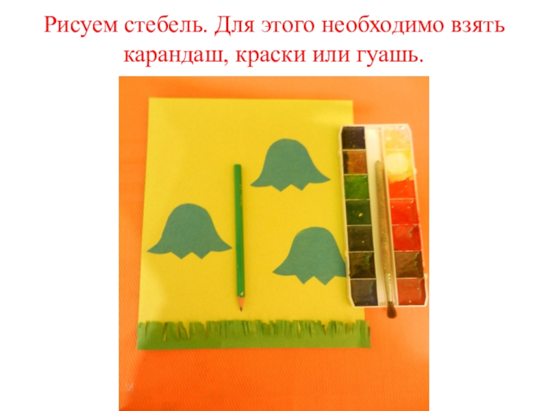 Слайд 13Рисуем стебель. Для этого необходимо взять карандаш, краски или гуашь.