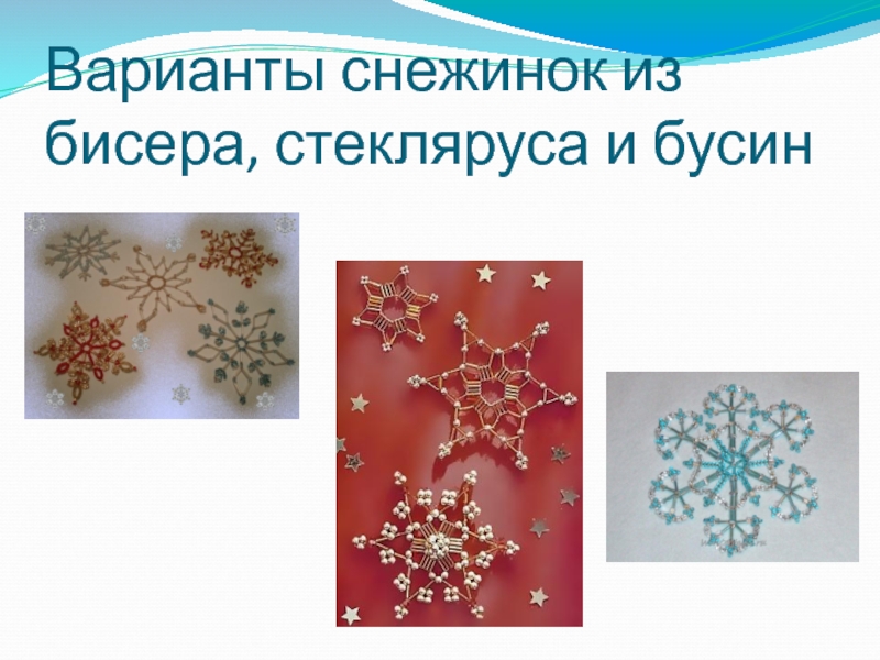 Слайд 14Варианты снежинок из бисера, стекляруса и бусин