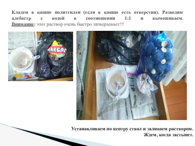Устанавливаем по центру ствол и заливаем раствором. Ждем, когда застынет.