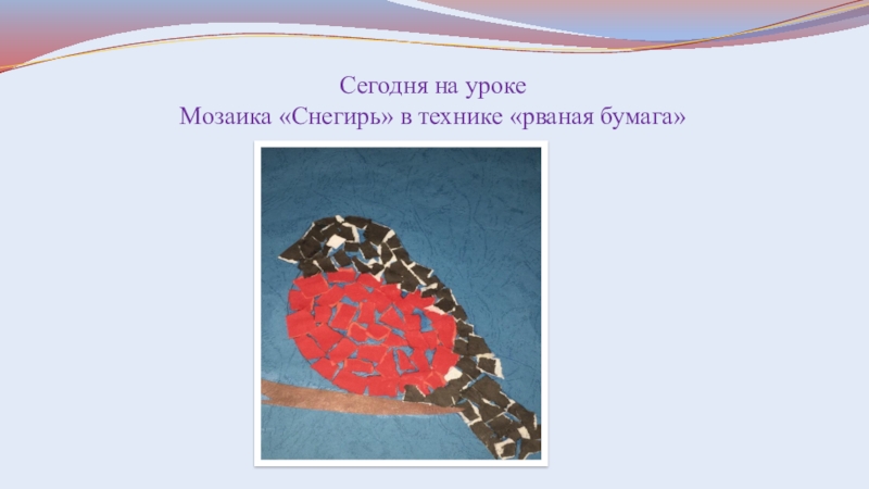 Сегодня на урокеМозаика «Снегирь» в технике «рваная бумага»