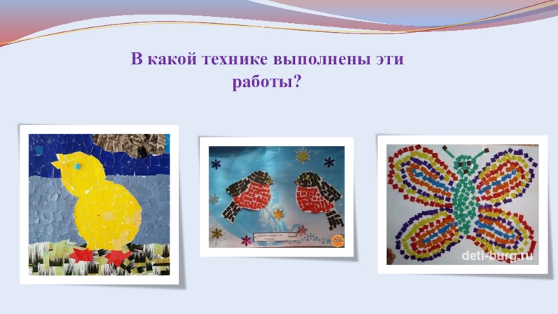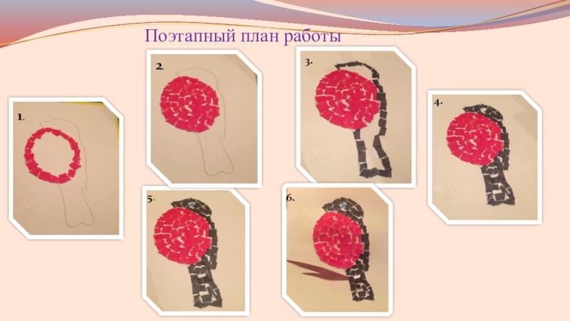 Подобрать нужные цвета бумаги: красную и чёрную. Методом обрывания подготовить материал для мозаики.