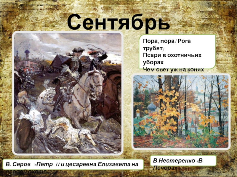 В. Серов «Петр II и цесаревна Елизавета на псовой охоте»