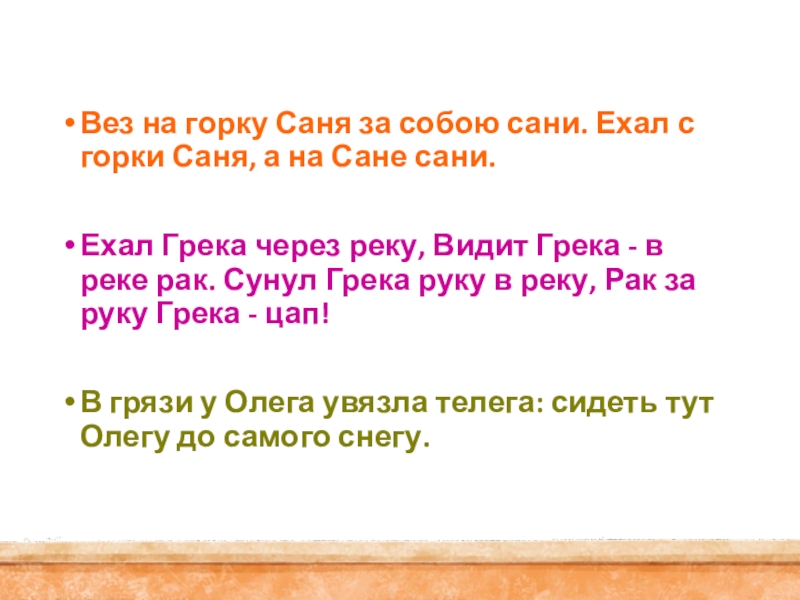 Высунуть широкий язык, тянуть языком то к подбородку, то к носу.