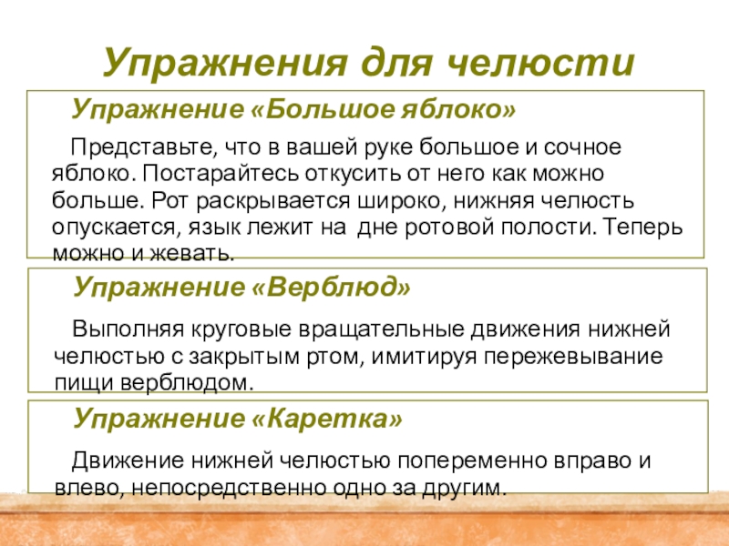 Выполняя круговые вращательные движения нижней челюстью с закрытым ртом, имитируя пережевывание пищи верблюдом.