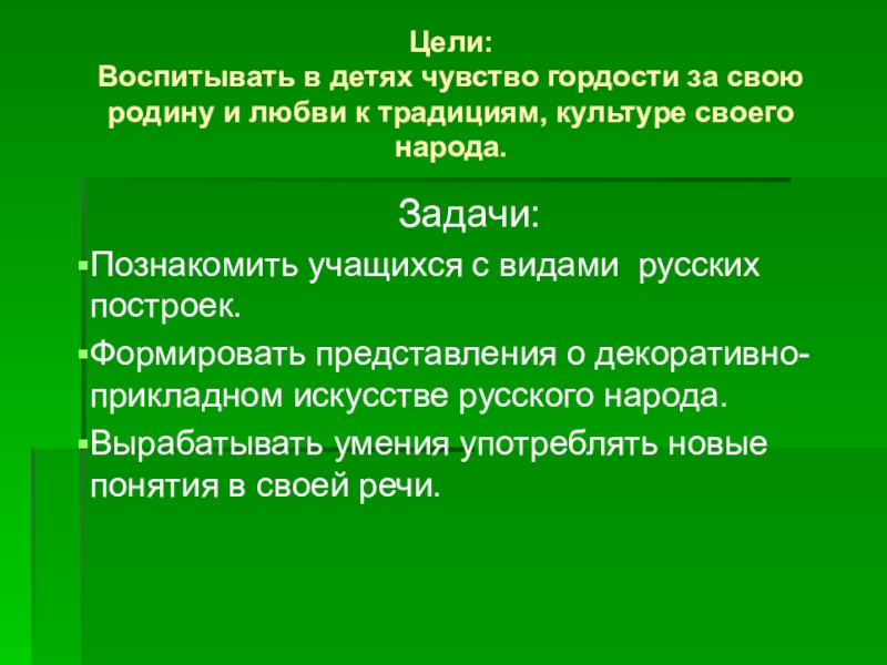 Формировать представления о декоративно-прикладном искусстве русского народа.
