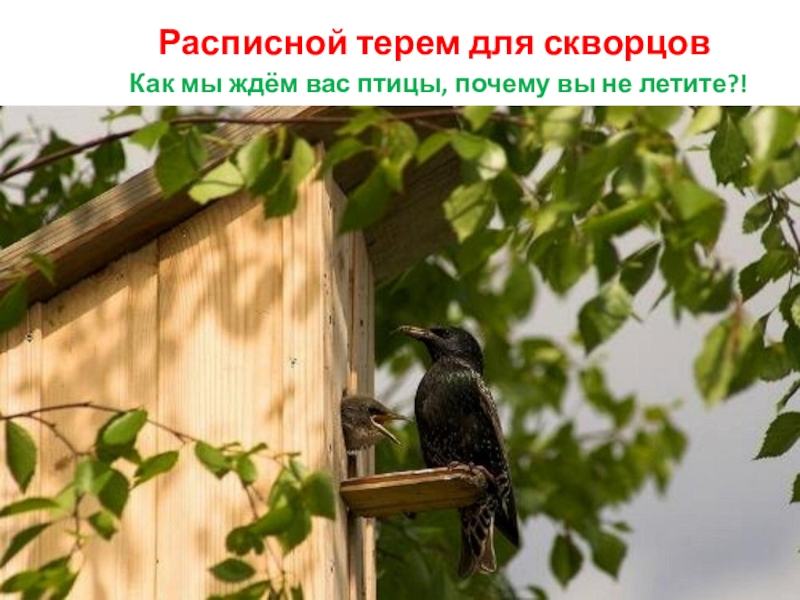 Слайд 14 В наших парках и садах нет скворечников. Ребята мало